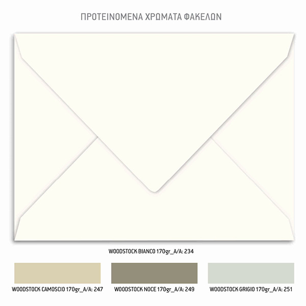 - Το προσκλητήριο εκτυπώνεται σε ειδικό παχύ, πολυτελές χαρτί 250 γρ. με υπόλευκη απόχρωση