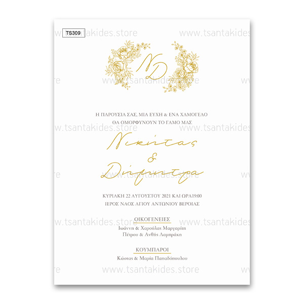 Προσκλητήριο γάμου με λιτό σχεδιασμό και χρυσές λεπτομέρειες