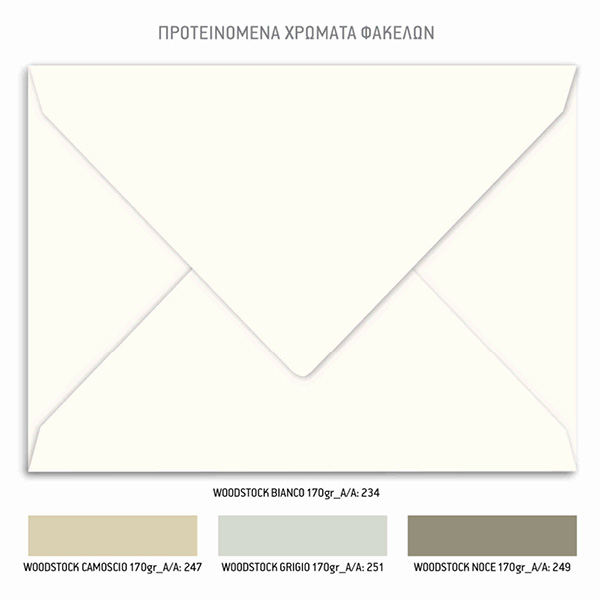 - Το προσκλητήριο εκτυπώνεται σε ειδικό παχύ, πολυτελές χαρτί 250 γρ. με υπόλευκη απόχρωση