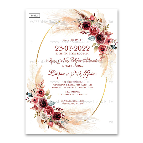 Προσκλητήριο γάμου με θέμα Burgundy Roses