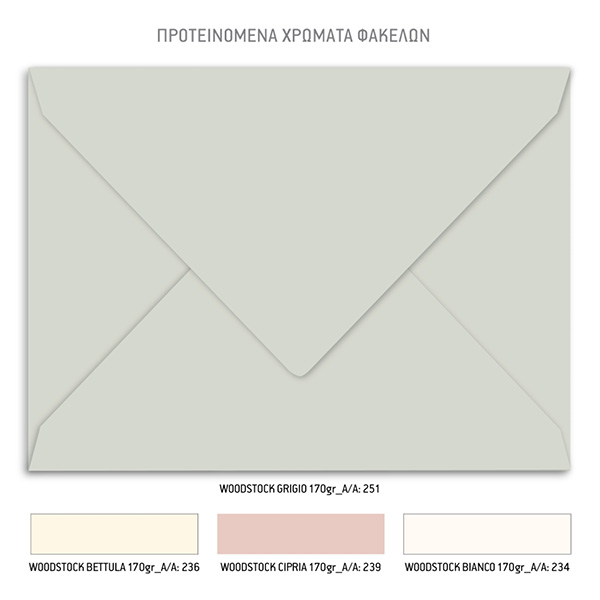 - Το προσκλητήριο εκτυπώνεται σε ειδικό παχύ, πολυτελές χαρτί 250 γρ. με υπόλευκη απόχρωση