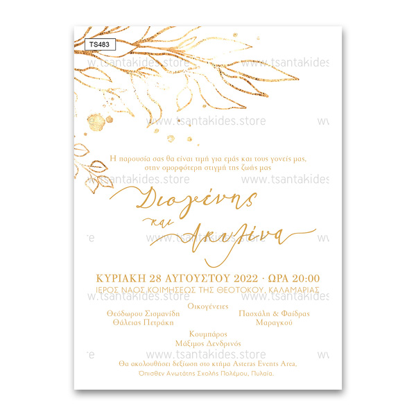 Προσκλητήριο γάμου με θέμα Gold Foil