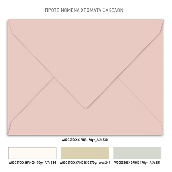 - Το προσκλητήριο εκτυπώνεται σε ειδικό παχύ, πολυτελές χαρτί 250 γρ. με υπόλευκη απόχρωση
