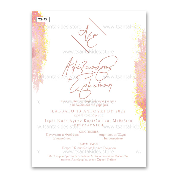 Προσκλητήριο γάμου με θέμα Pink Brushes