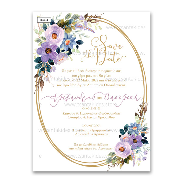 Προσκλητήριο γάμου με θέμα Purple Gold Wreath