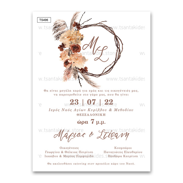 Προσκλητήριο γάμου με θέμα Rustic Wreath
