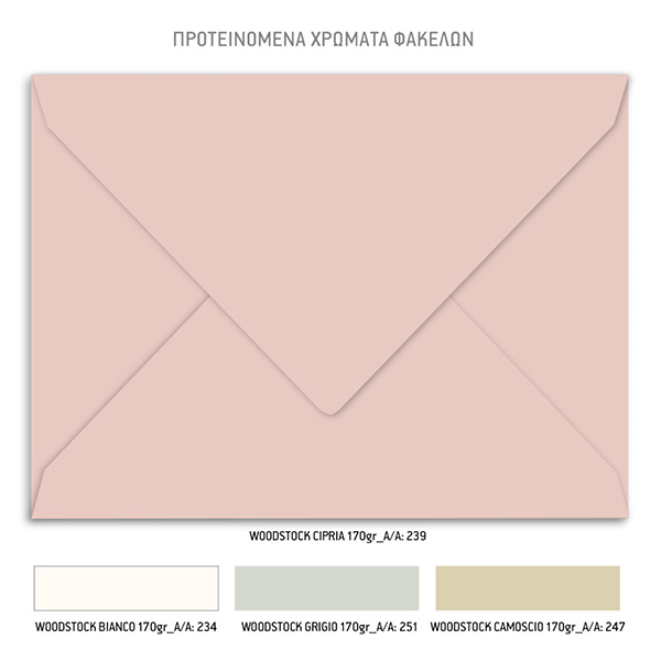 - Το προσκλητήριο εκτυπώνεται σε ειδικό παχύ, πολυτελές χαρτί 250 γρ. με υπόλευκη απόχρωση