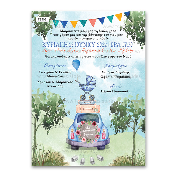 Προσκλητήριο γάμου – βάπτισης με θέμα Blue Car in Adventure