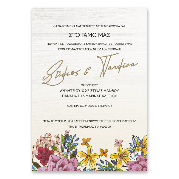 Ανθικό Προσκλητήριο Γάμου Κάθετο