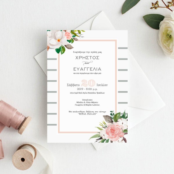 Chic Ρομαντικό Προσκλητήριο Γάμου με Άνθη