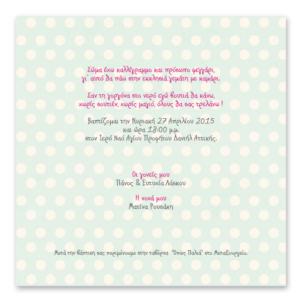 - Έγχρωμο προσκλητήριο βάπτισης 2 όψεων