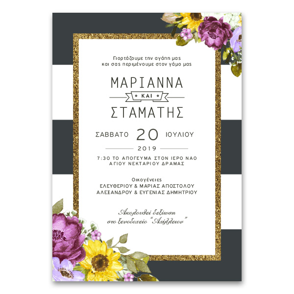 Καλαίσθητη Κάθετη Ανθική Πρόσκληση Γάμου