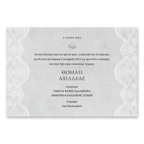 - Το προσκλητήριο εκτυπώνεται σε παχύ, πολυτελές υπόλευκο χαρτί 250 γρ.