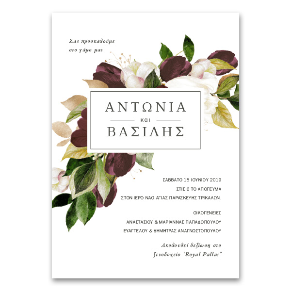 Κλασική Κάθετη Κομψή Πρόσκληση με Άνθη