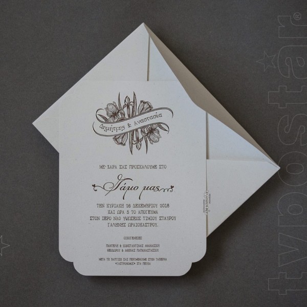 Κλασικό Προσκλητήριο Γάμου με Γραμμικά Άνθη