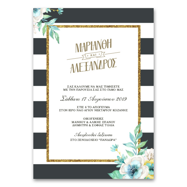 - Το προσκλητήριο εκτυπώνεται σε παχύ, πολυτελές υπόλευκο χαρτί 250 γρ.