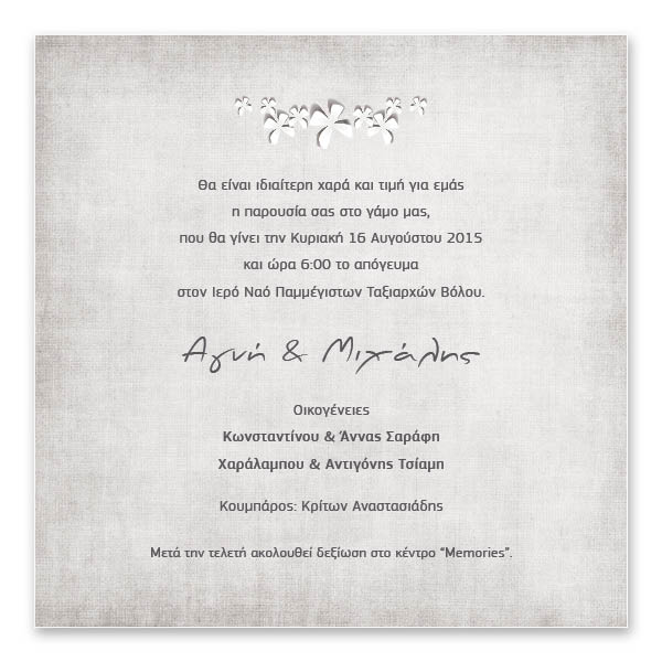 Please check in detail the invitation for possible mistakes. After your αpproval by email, we will start printing.