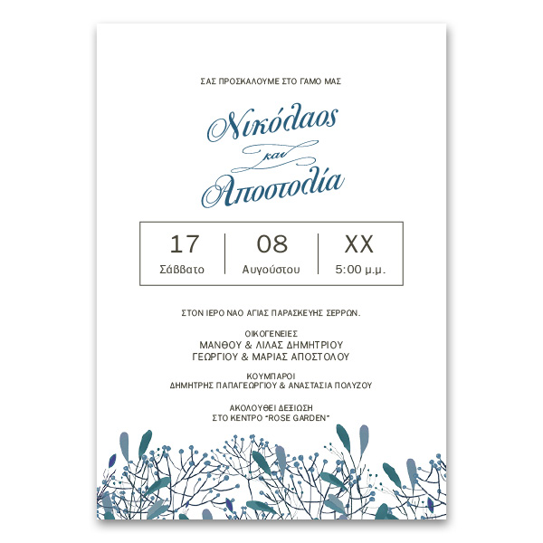 - Το προσκλητήριο εκτυπώνεται σε παχύ, πολυτελές υπόλευκο χαρτί 250 γρ.