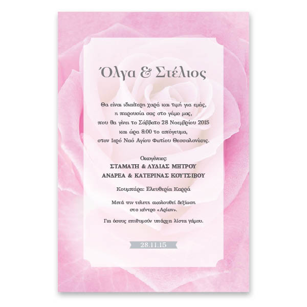 - Το προσκλητήριο εκτυπώνεται σε παχύ, πολυτελές υπόλευκο χαρτί 250 γρ.