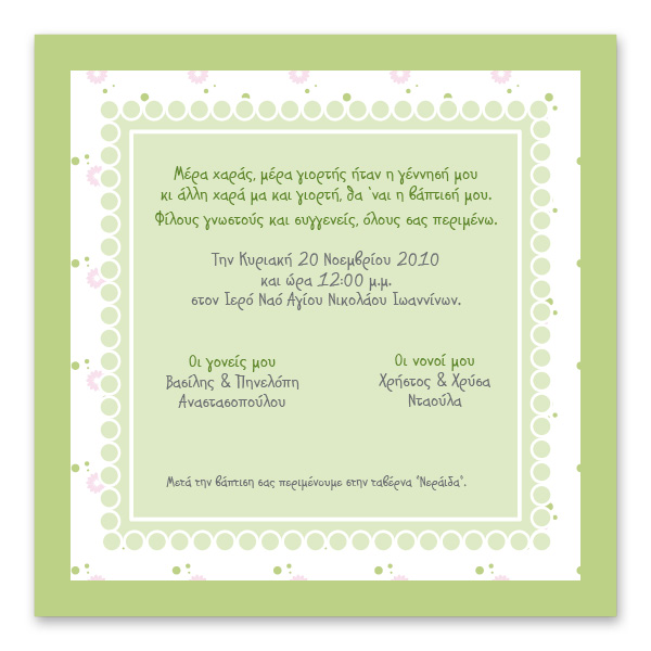 - Έγχρωμο προσκλητήριο βάπτισης 2 όψεων