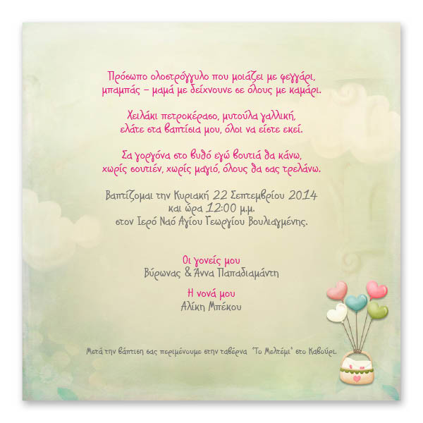- Έγχρωμο προσκλητήριο βάπτισης 2 όψεων