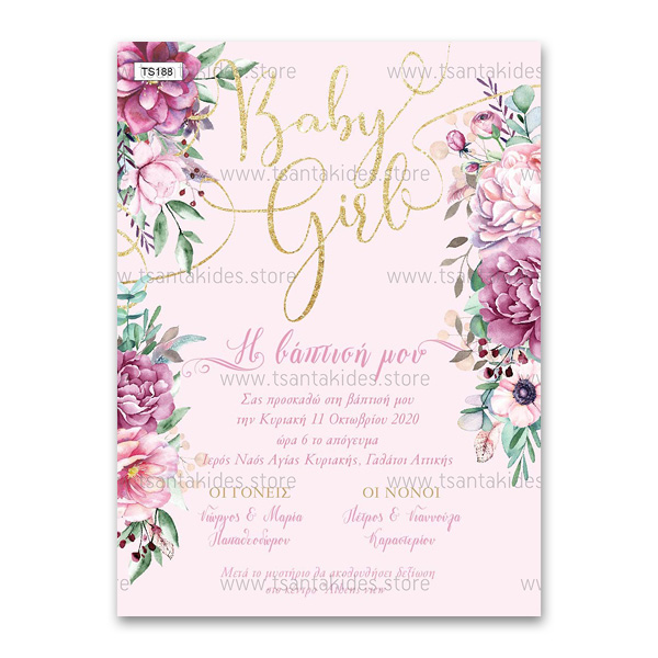 Πρόσκληση Βάπτισης Floral