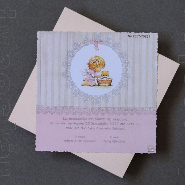Πρόσκληση Βάπτισης με Κοριτσάκι και Γατάκι
