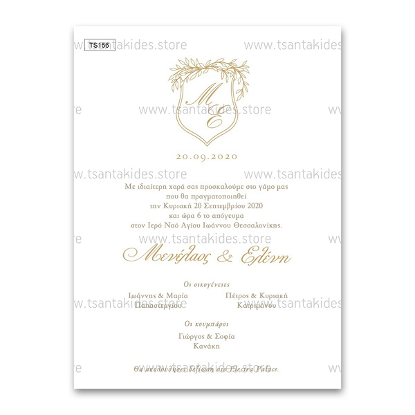 - Προσκλητήριο Γάμου 1 όψης