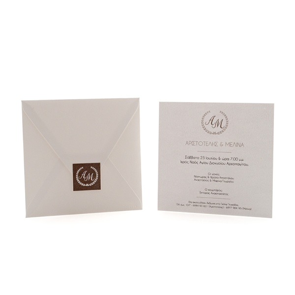 Πρόσκληση Γάμου με Μονογράμματα και Στεφάνι
