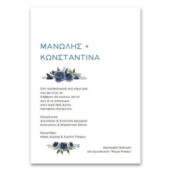 Πρόσκληση Γάμου Μπλε Κλασικά Τριαντάφυλλα