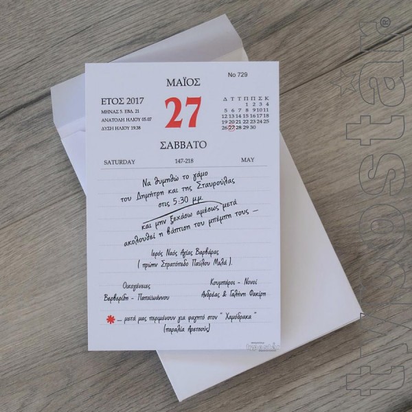 Πρόσκληση Γάμου Τύπου Ημερολόγιο