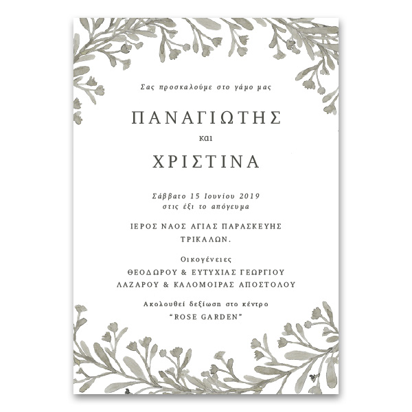Πρόσκληση Κλασική Κάθετη με Κλαδιά και Φύλλα