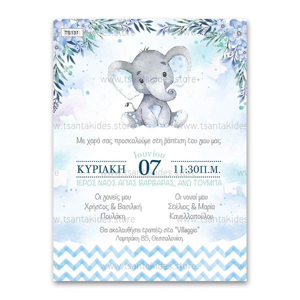 Προσκλητήριο Βάπτισης με Ελεφαντάκι