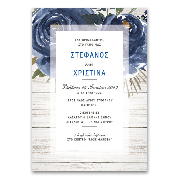 Προσκλητήριο Ρουστίκ με Πλαίσιο και Μπλε Άνθη