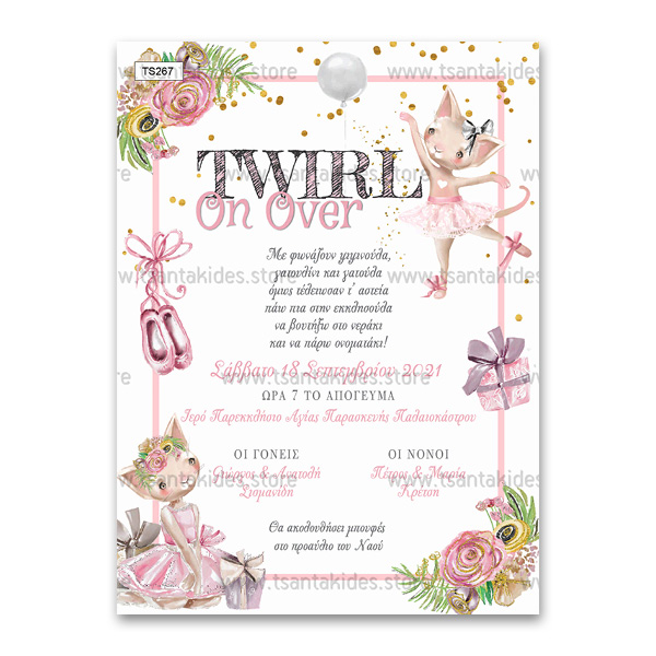 Προσκλητήριο Βάπτισης Γατούλα Μπαλαρίνα