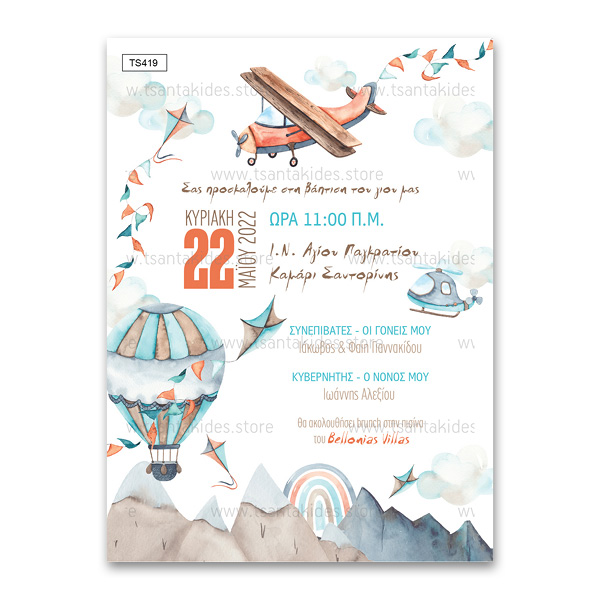 Προσκλητήριο βάπτισης για αγόρι με θέμα Travel Boy
