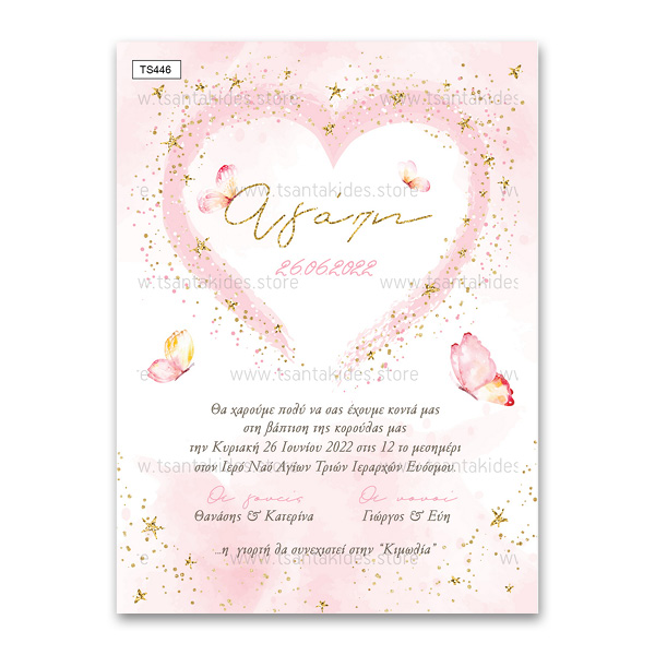Προσκλητήριο βάπτισης για κορίτσι με θέμα Lovely Butterflies