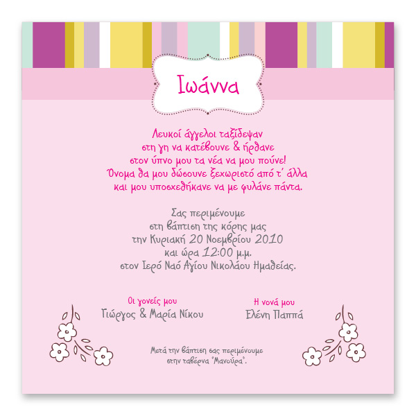 - Έγχρωμο προσκλητήριο βάπτισης 2 όψεων