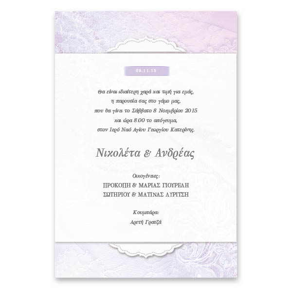 - Το προσκλητήριο εκτυπώνεται σε παχύ, πολυτελές υπόλευκο χαρτί 250 γρ.