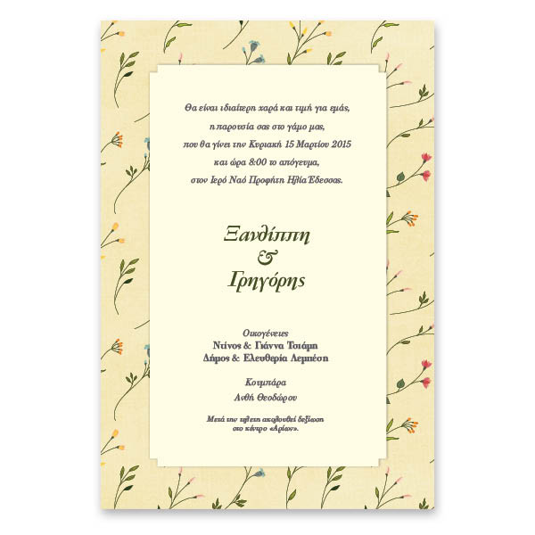 - Το προσκλητήριο εκτυπώνεται σε παχύ, πολυτελές υπόλευκο χαρτί 250 γρ.