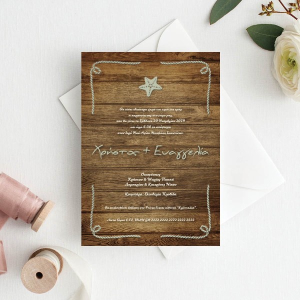 Ρουστίκ Κάθετη Πρόσκληση Με Αστερία
