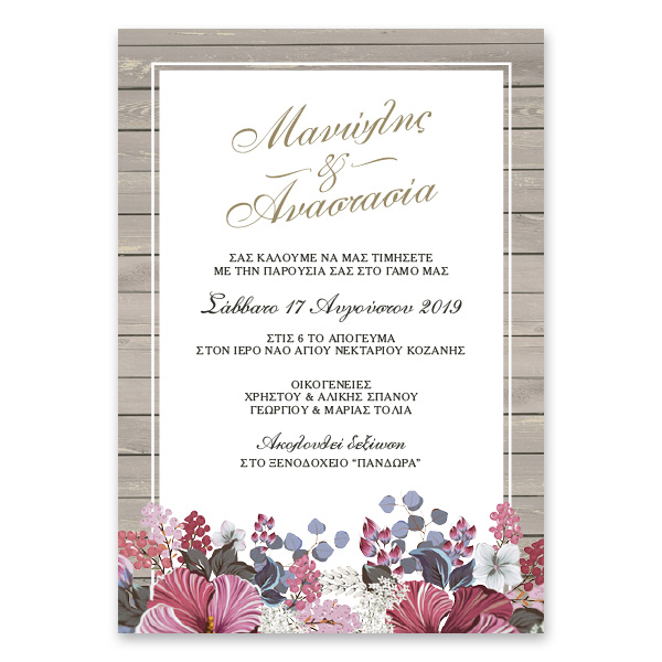 - Έγχρωμο προσκλητήριο γάμου 1 όψης