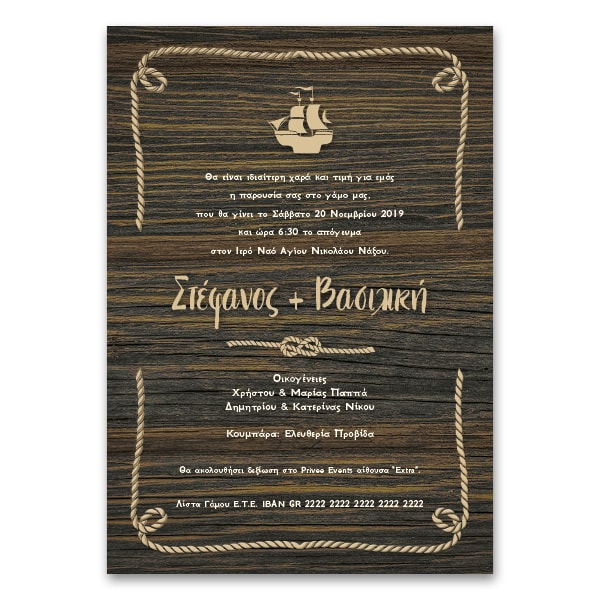 Rustic Σύγχρονη Πρόσκληση Γάμου με Καράβι