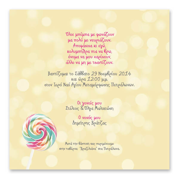 - Έγχρωμο προσκλητήριο βάπτισης 2 όψεων